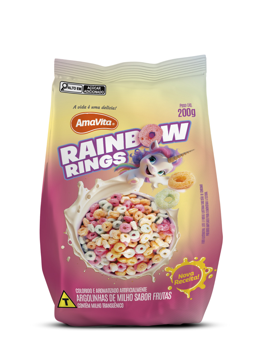 Ingredientes: Farinha de milho enriquecida com ferro e ácido fólico, açúcar, farinha de arroz, malte,