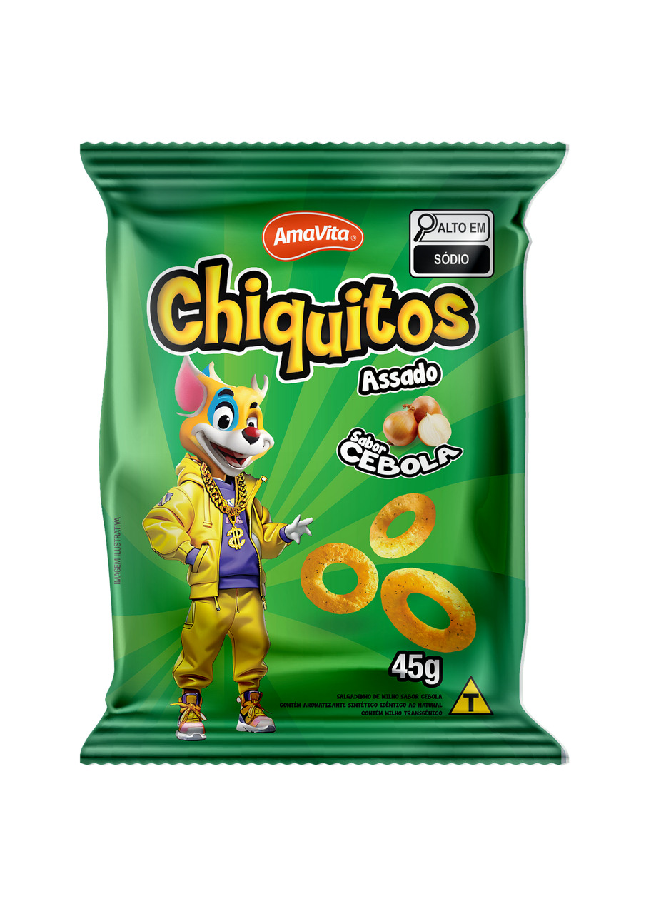 INGREDIENTES: Farinha de Milho Enriquecida com Ferro e Ácido Fólico, Óleo Vegetal de Soja, Sal Micronizado, Aromatizante, Antiumectante Carbonato de Cálcio, Realçador de Sabor Glutamato Monossódico.